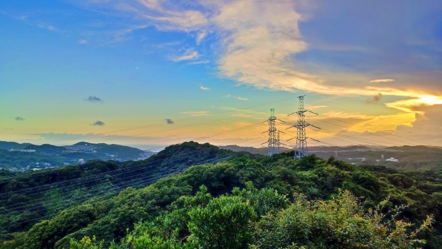 - 山中の送電線張替工事の監視
